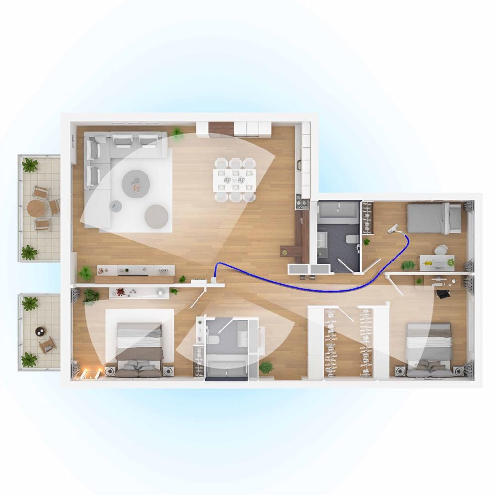 - يتم مد أنابيب PVC داخل الجدران، تصل بين الوحدة المركزية وكل غرفة.